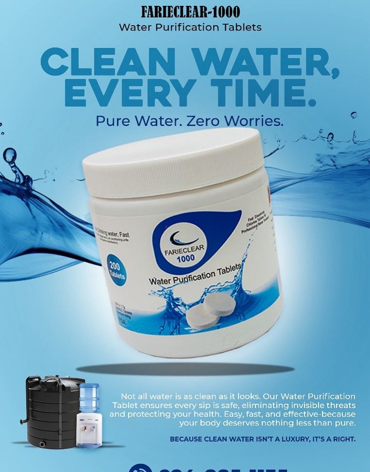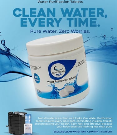 Tablets that release chlorine to disinfect drinking water, intended for use in potable water treatment.You can add to your water tank, bore holes, or during your water bottling process